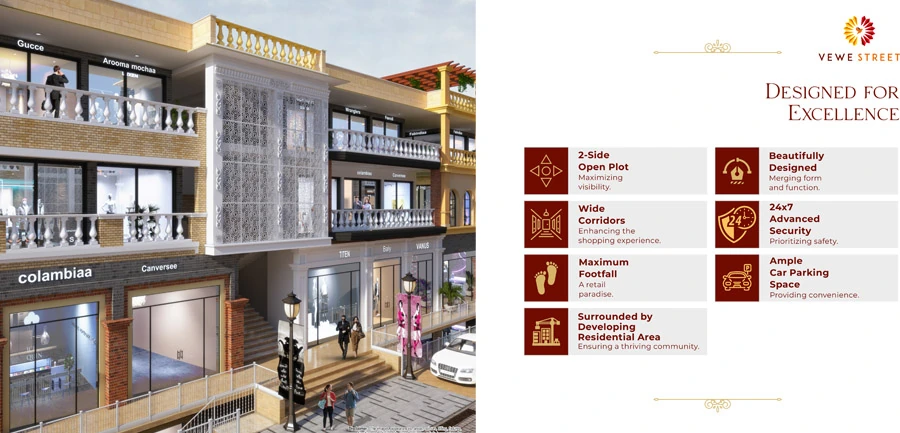 VeWe Street Ghaziabad introduces premium retail shop along the prime NH24 stretch. Designed as a sophisticated lifestyle hub, it brings together a handpicked selection of top retail brands known for their quality, style, and innovation. With an impressive variety of shopping and business experiences, VeWe Street is poised to become Ghaziabad’s new benchmark for retail elegance. Step into a vibrant urban destination where every element is thoughtfully crafted to enhance both your commercial growth and shopping journey